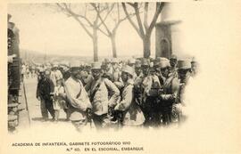 Academia de infantería subiendo a una composición detenida en la estación de El Escorial