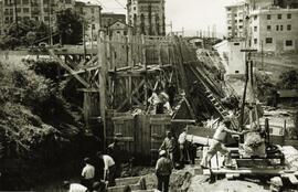 Obras de construcción del apeadero. Nota al dorso: "Apeadero de Colón en Irún. Ampliación de vías para apartado de unidades eléctricas".