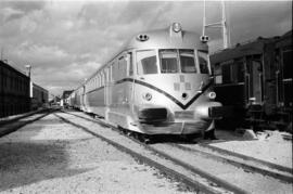 Automotor térmico diésel TAF (Tren Automotor Fiat) 9502, posteriormente renumerado en la serie 595 de RENFE, en el depósito de Madrid - Cerro Negro, durante una visita realizada con motivo del XVII Congreso Internacional de Ferrocarriles