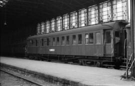Coche de viajeros AAWL 630 de bogies y caja de madera de RENFE, ex. Compañía del Norte, construido por Carde y Escoriaza en el año 1924, en la estación de Barcelona - Vilanova, también conocida como estación del Norte de Barcelona