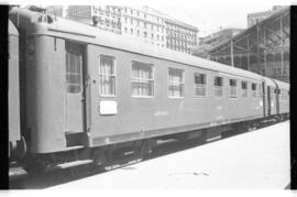 Coche mixto de la serie 5000 de 1ª clase / cafetería de la serie AAR 5005 a 5029 de RENFE, ex serie AA 5001 a 5101 de RENFE, fabricada por Carde y Escoriaza entre 1946 y 1951, formando parte de una composición detenida en la estación de Madrid - Príncipe Pío