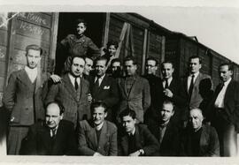 Vista general de la plantilla en pleno de la oficina de la demarcación de Movimiento de Alcázar de San Juan se fotografió en torno a un vagón en la estación manchega. Entre ellos se encontraba don Manuel Montarroso Quintanar, quien, además de ferroviario de pro, es poseedor de una magnifica memoria, ya que ha sido capaz de identificar a todos los que hace ya cuarenta y tres años posaron para la foto. Subidos en el vagón se fotografiaron don José Jiménez Balibrea y don Nicéforo Castellanos Barrios. De pie, y de izquierda a derecha: don Manuel Miguel Muñoz, don José González Martínez, don Justo Jiménez Montesinos, don Antonio Gómez Huedo, don Enrique Belmonte Cuartero, don Manuel Guerrero Gallego, don Benigno Ros Mengual, don Manuel Cuartero Pozo, don José Bermejo López y don Julián Camarero. Agachados y en primer plano posaron don Leandro Gómez Mazarambroz, don Alfonso Contreras Egea, don Manuel Montarroso Quintanar, don José Ramírez Moraleda y don Melchor Cabrejas Rincón.