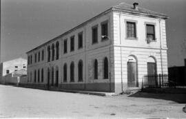 Vista general del edificio de viajeros de la estación, tomada por el lado de la población.