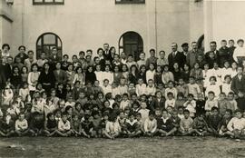 Vista general de los alumnos, profesores y la junta directiva del colegio de ferroviarios en Granada