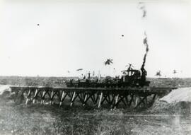 Vista panorámica de la primera locomotora de vapor de los primeros ferrocarriles de Hershey sobre un puente en el municipio de Santa Cruz del Norte en la provincia de Mayabaque, en Cuba.