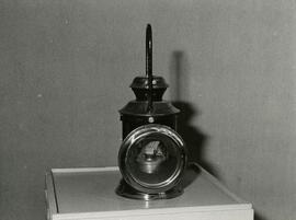 Vista del frontal de un antiguo farol de un ferrocaril de una locomotora sin identificar