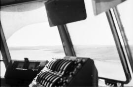 Interior de la cabina de conducción de un automotor diésel 595 TAF de RENFE de la línea de Zamora a Orense