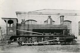 Vista general de una locomotora de mercancías construida por la casa Sharp Stewart en los años 1878, 1879 y 1880 para la compañía del ferrocarril de Tarragona a Barcelona y Francia con el número de serie 213-223 pero al pasar a la compañía MZA recibió la numeración 562-575.