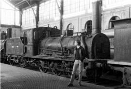 Vista general de la locomotora, junto a la que posa Juan Carlos Giersig
