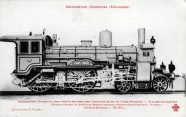 Locomotora de vapor Compound, para trenes expresos de los ferrocarriles estatales prusianos, de 4 ruedas acopladas, nº 151, categoría S3, con tipo de rodaje 440 (220 español). Construida por Vulcan