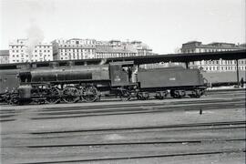 Vista lateral de la locomotora de vapor rodaje 231, posiblemente serie 231-4021 a 4024, fabricada por Maffei en 1913