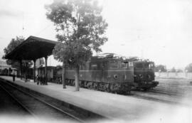 Locomotoras eléctricas de la serie 274 - 001 a 024 de RENFE, ex Norte serie 7401 a 7424, construida por Devis (MACOSA) y Sécheron entre 1944 y 1947, detenidas en la estación de El Escorial