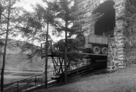 NOTA HISTÓRICA: Aparte del servicio de viajeros, el Funicular de la Reineta también se empleaba para el transporte de mercancías. Para ello se desmontaba una de las cajas, dejando libre toda la superficie de la plataforma, en la que se podían admitir camiones de hasta 3900k de carga bruta.