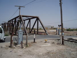 Puente métalico ferroviario y paso a nivel en Lorca de la línea de Murcia a Águilas