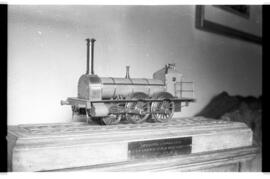 Reproducción a escala de una locomotora de vapor de rodaje 120 del Ferrocarril de Madrid a Aranjuez, que fue realizada por la AAFM hacia 1957 y regalada a RENFE, siendo identificada erróneamente como la nº 2, denominada "Madrileña", del fabricante inglés Stothert, Slaughter & Co (Bristol), cuando en realidad corresponde a las locomotoras de la línea de la constructora belga Société Anonyme de Saint Léonard, bajo la gerencia de Jean H. Regnier-Poncelet