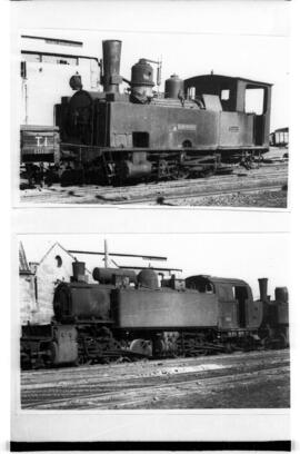 Vistas generales de una locomotoras de vapor de rodaje 030 T sin identificar, y de la nº 23 de rodaje 030 + 030 Mallet, fabricada por Henschel