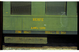 Rotulación de coche cama de 1ª clase AAWL 1031 de la serie AAWL 1031 a 1033 de RENFE, ex Central de Aragón AVC 201 y fabricado por Carde y Escoriaza en 1934, detenido en una estación sin identificar